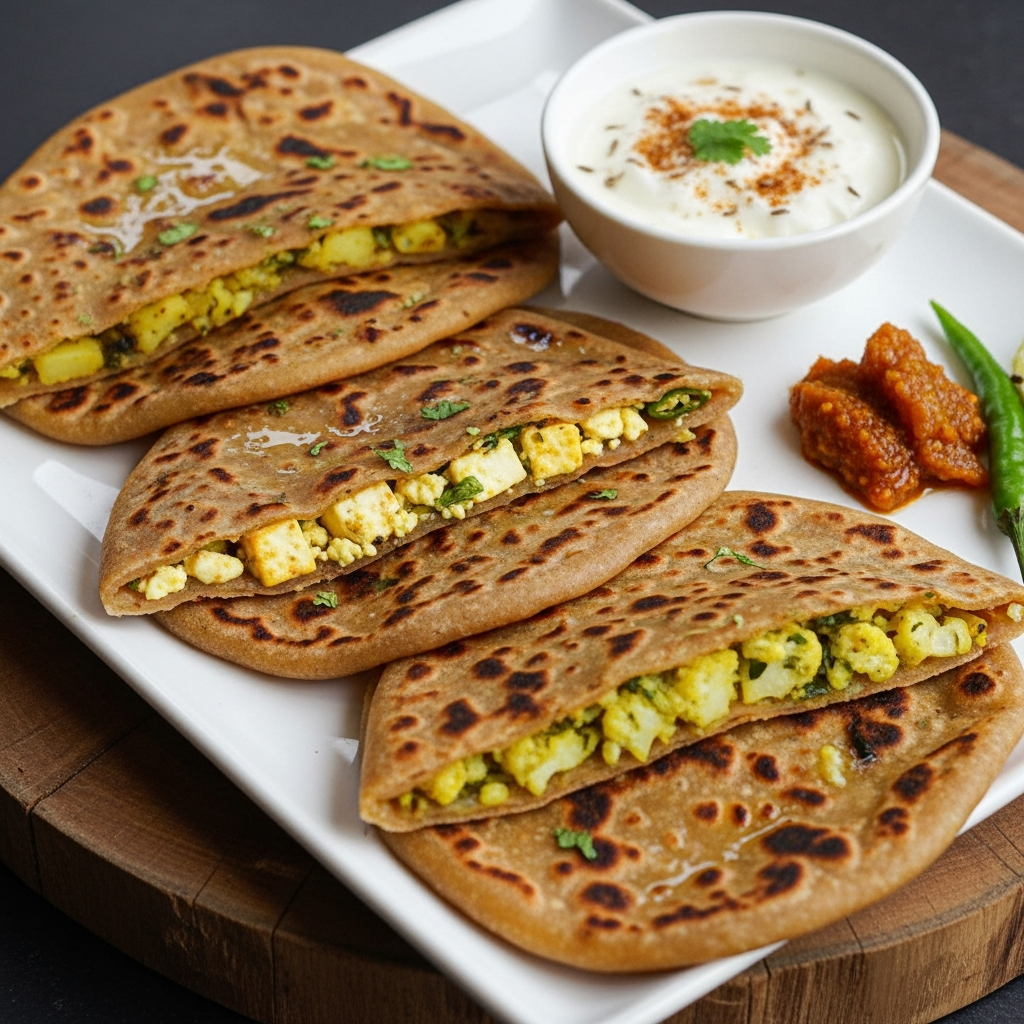 Flatbread made stuffed with a flavorful mixture of Paneer or Potato or Gobi.