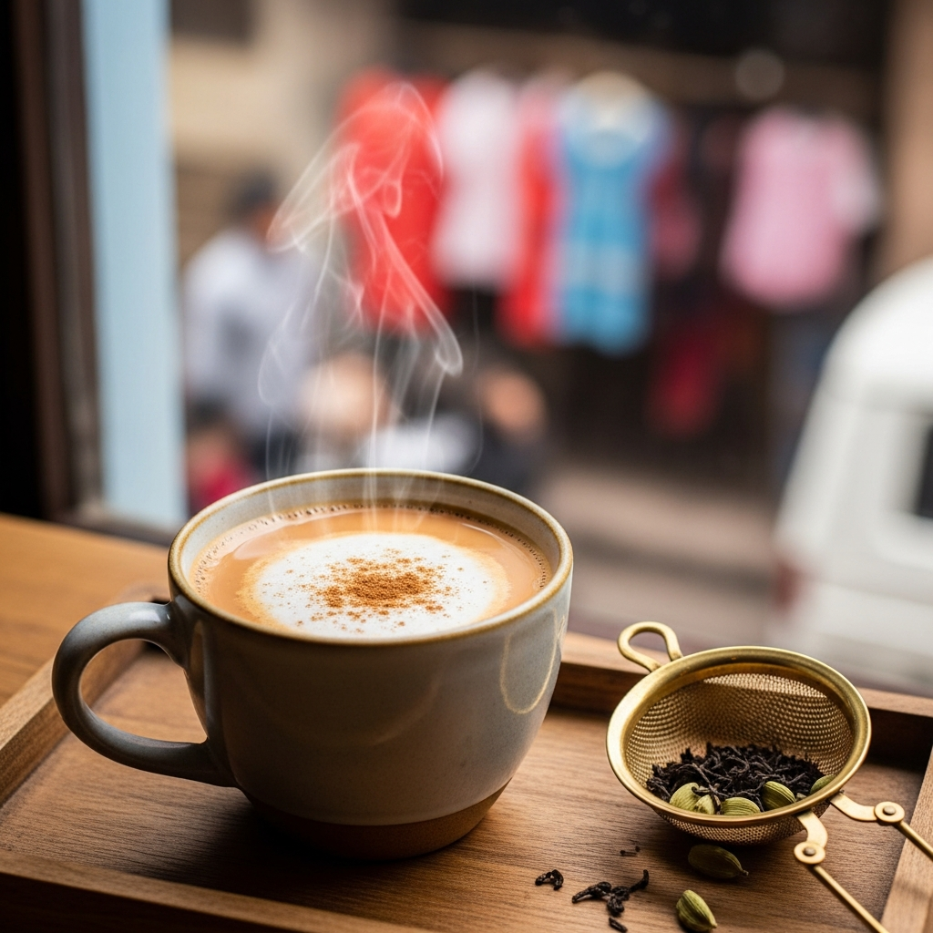 Hot drink made with Milk and tea leaves.
